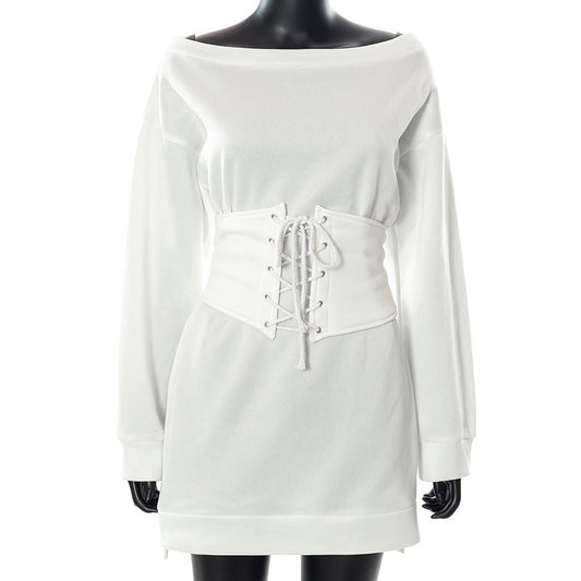 Women's Long-sleeved Mid-waist Solid Color Hip Skirt
