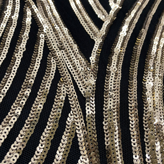 Black And Gold Sequin Long Sleeve Dress