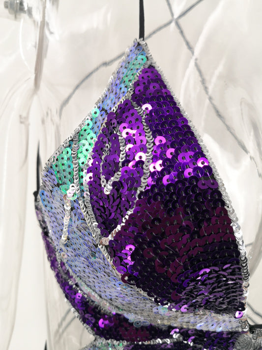 Crystal Drill Chain Straps Tulle Stitched Backless Evening Gown