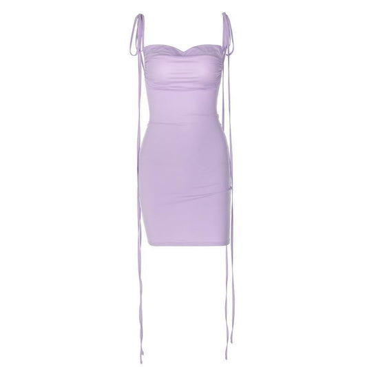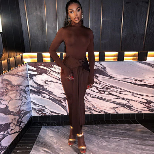 Women's New Color Hollow-out Navel Pleated Wrapped Chest Length Dress