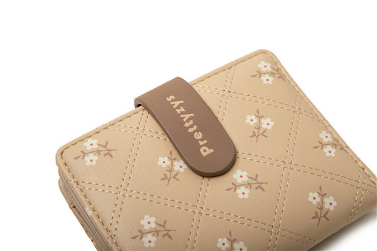Women's Soft Printed Buckle Folding Small Wallet Multiple Card Slots Integrated Card Holder