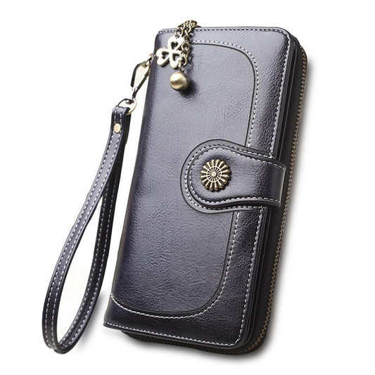 Oil Wax Leather Double Zipper Long European And American New Retro Anti-theft Swiping Women's Wallet