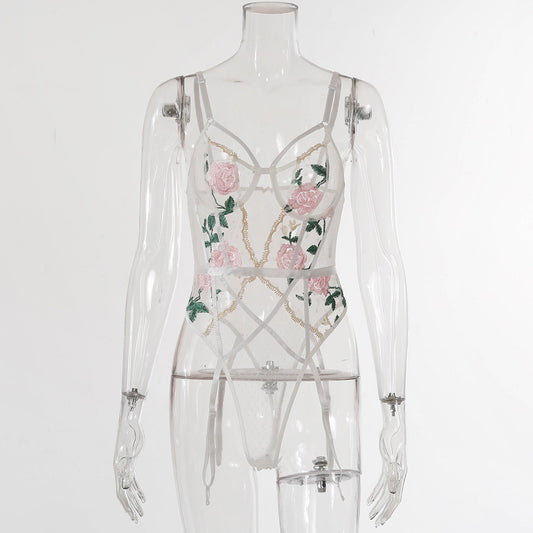 Underwear Embroidered Flower Fishbone Sexy Push Up Suit