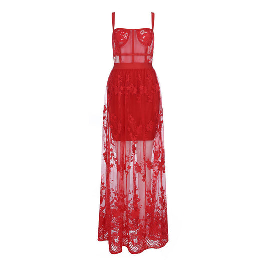 Long Spring and Summer Lace Dress with Lace Embroidery