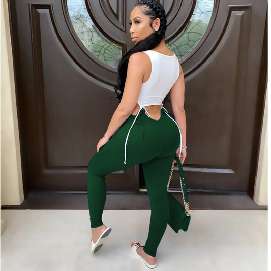 Hollow Out Patchwork Jumpsuit Rompers Trousers New Sexy Women Sleeveless