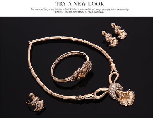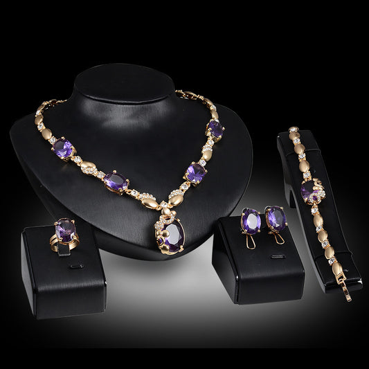 Crystal Necklace And Ear Jewelry Set Of Four Bridal Banquet Jewelry Set