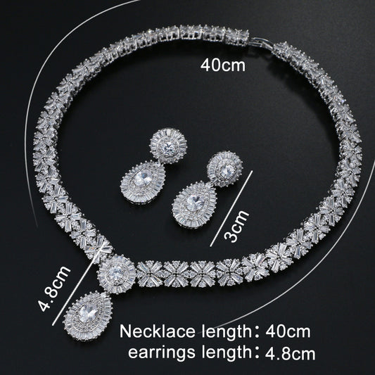 Zircon Inlaid Water Drop Jewelry Earring Ring Necklace