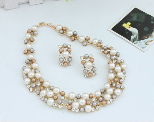 New Women's Ornament Bridal Necklace Earrings Jewelry Suit