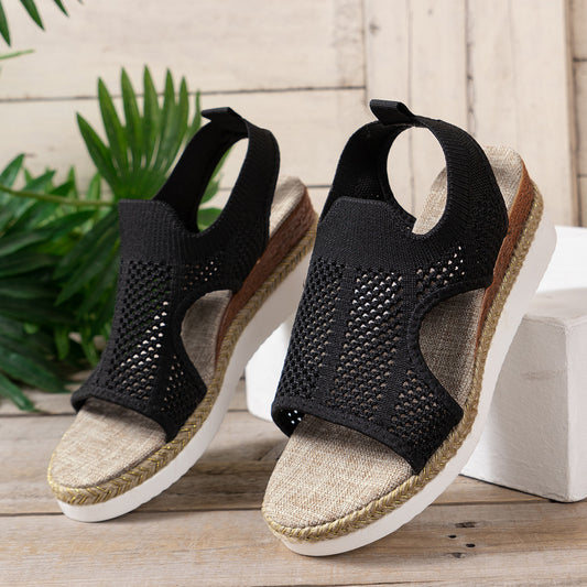 New Hollow Wedges Sandals Summer Fly Woven Breathable Mesh Shoes For Women Peep-Toe Sandals