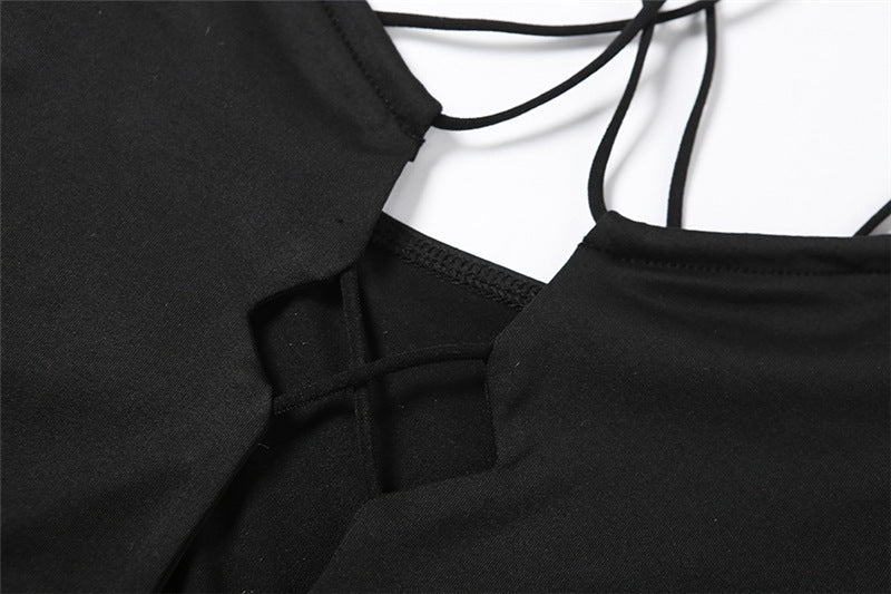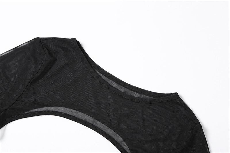 Addison Black Mesh Cross Mini Dress Hollow Out
