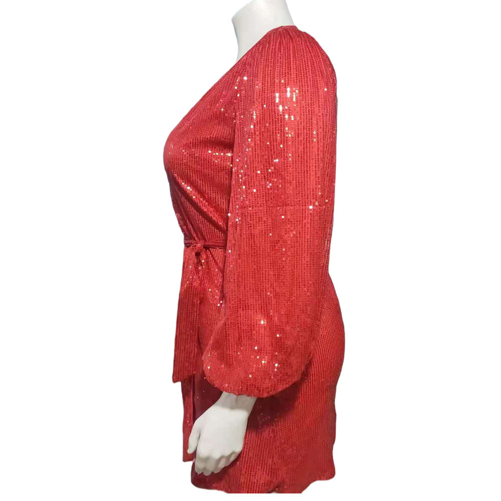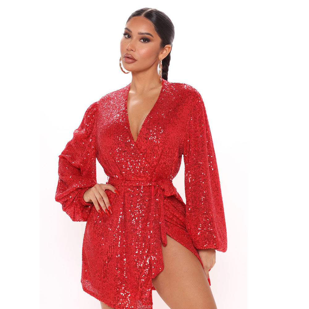 Belted Long Sleeve Short Skirt Dress