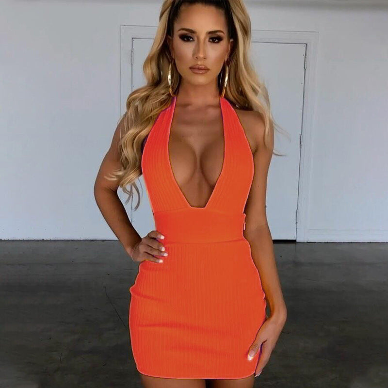 Dress Hanging Neck Sexy Bag Hip Skirt Slim Dress