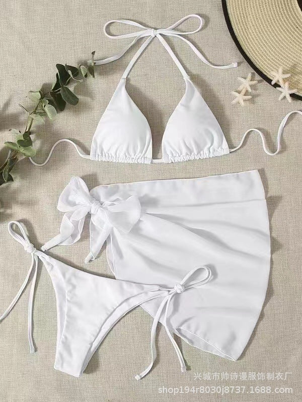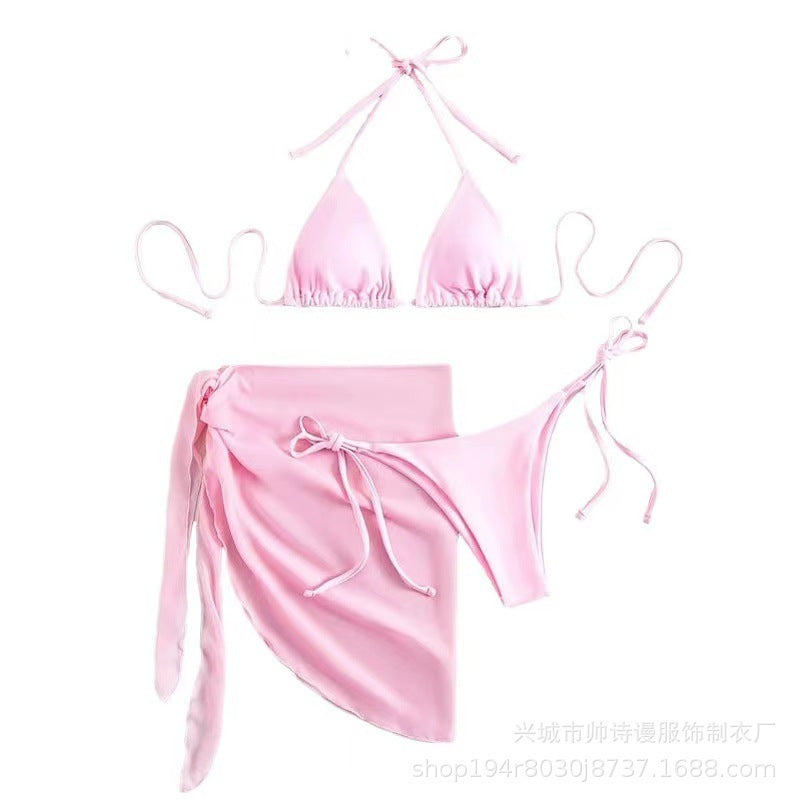 European And American Foreign Trade New Solid Color Triangle Cup Lace-up Bikini Three-piece Set
