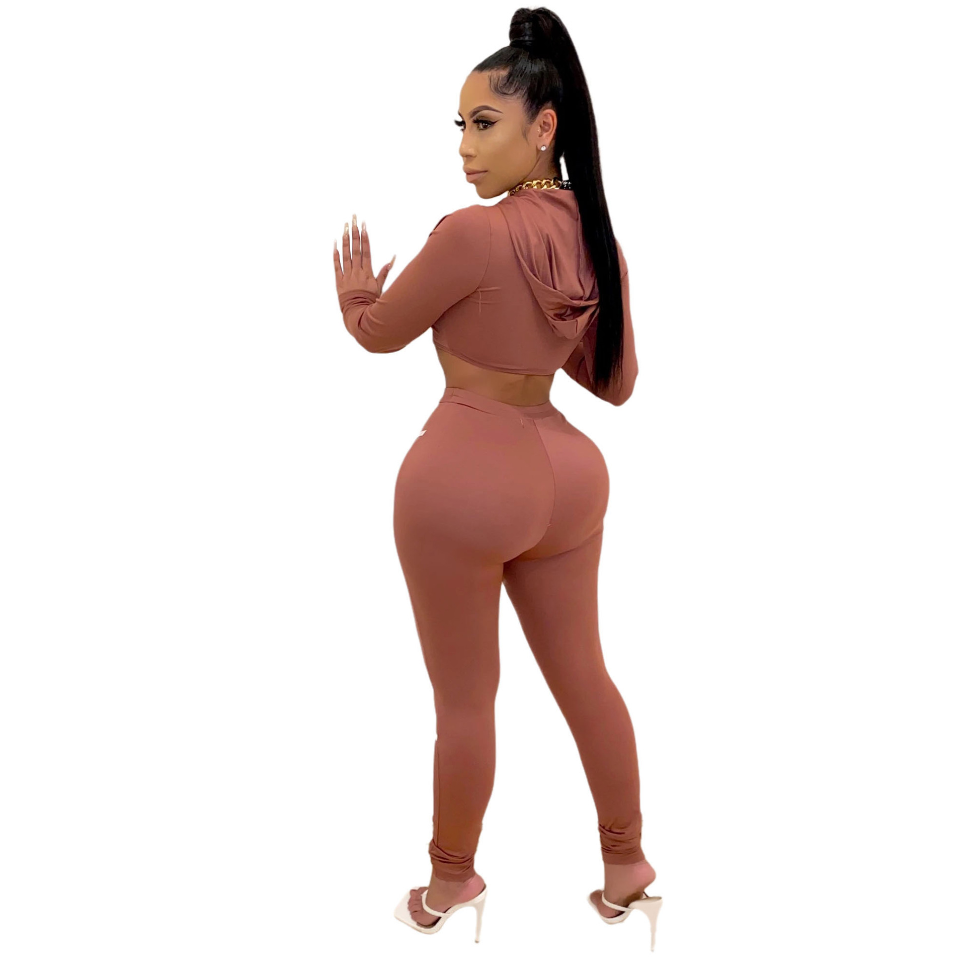 European And American Sexy Fashion Casual Hooded Two-Piece Suit