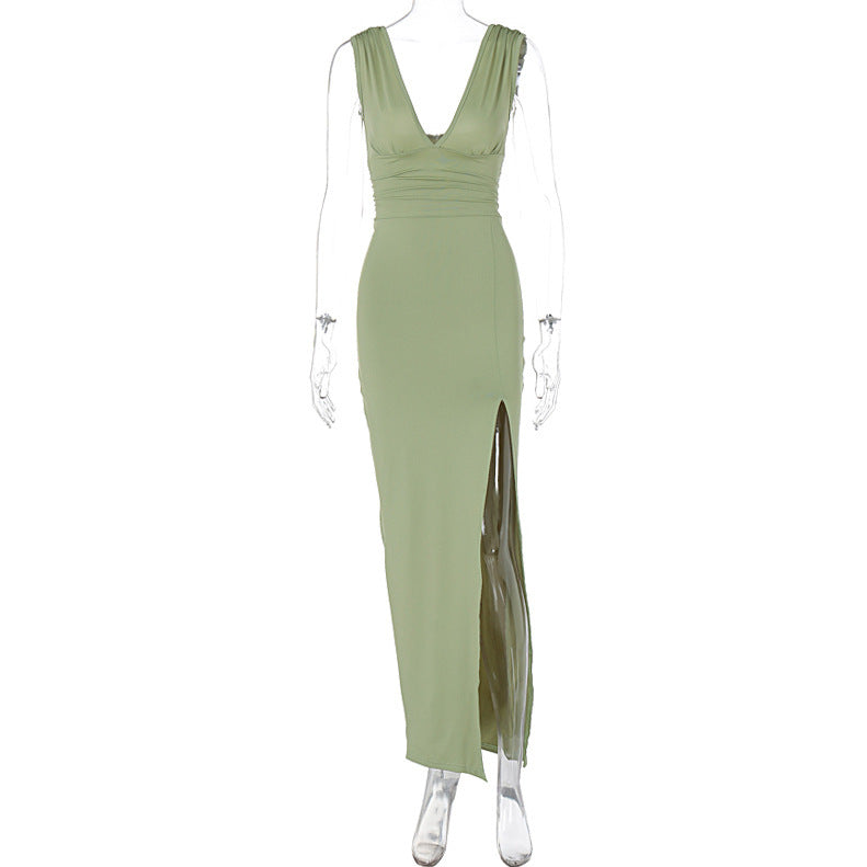 Fashion Deep V-neck Slim Fit Backless Split Dress