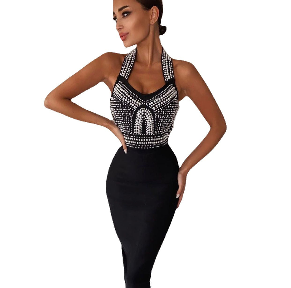 Fashion Sleeveless Tight Beaded Diamond Dress