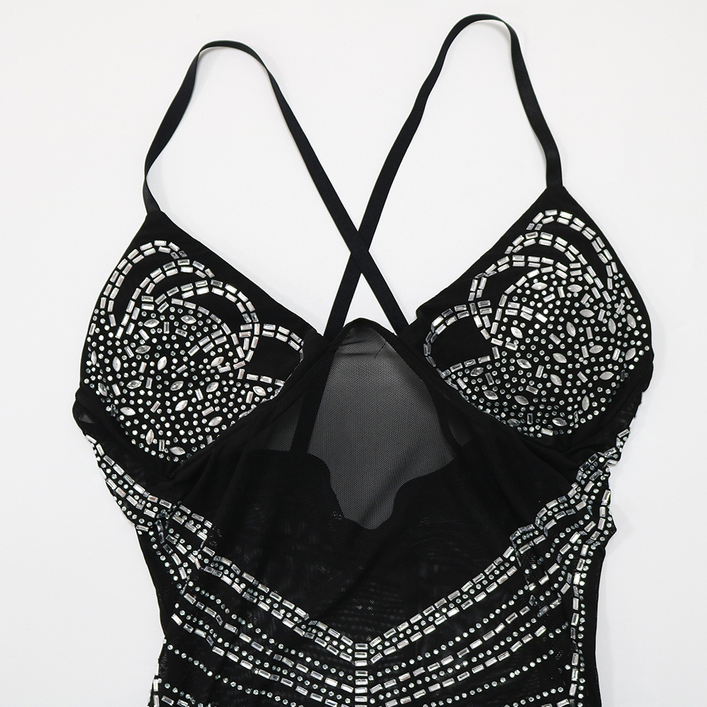 Fashion Women's Sling Polyester Mesh Hot Drill Dress