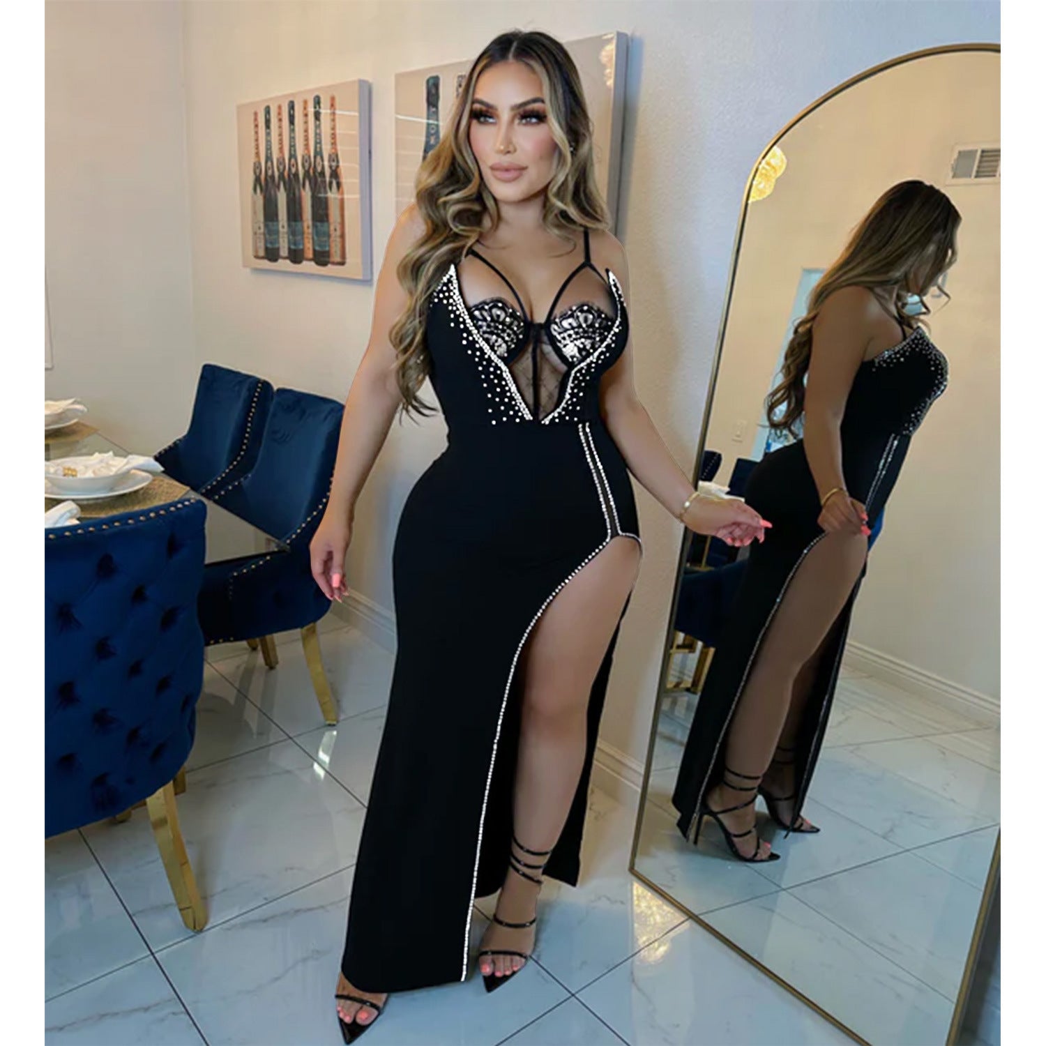 Fashion Women's Wear Solid Color Rhinestone Sleeveless Dress
