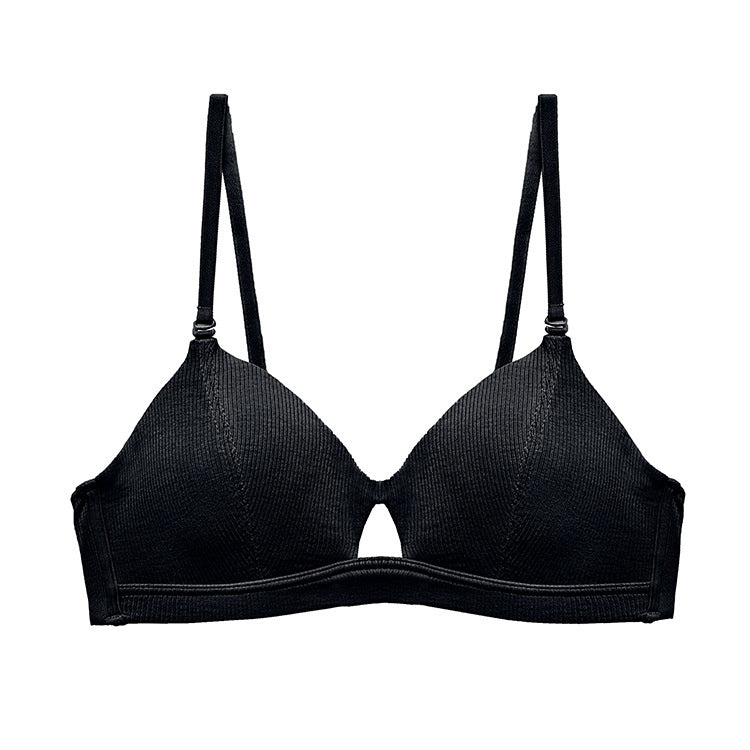 French Ribbed Thin No Steel Rim Bra European And American Sexy And Simple