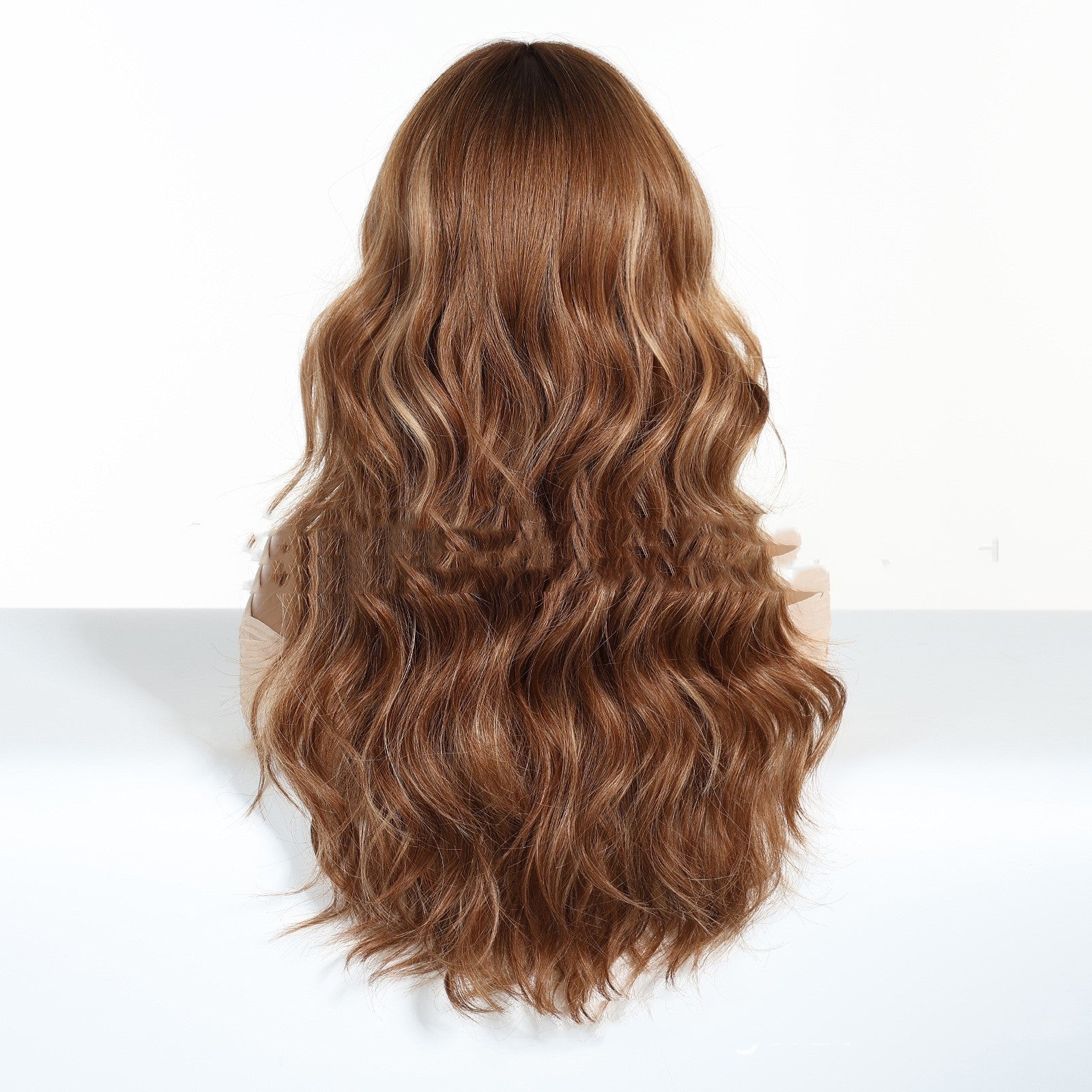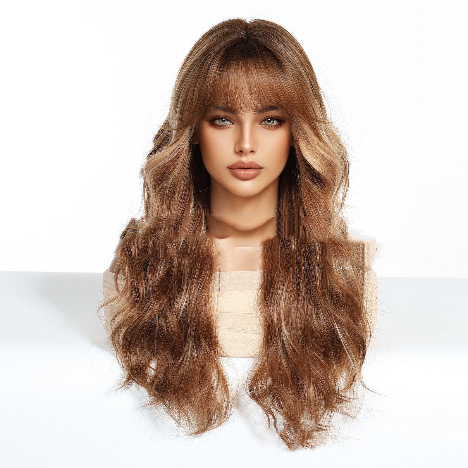 Fringe Brown Highlights Long Curly Hair Full-head Wig