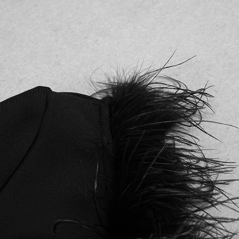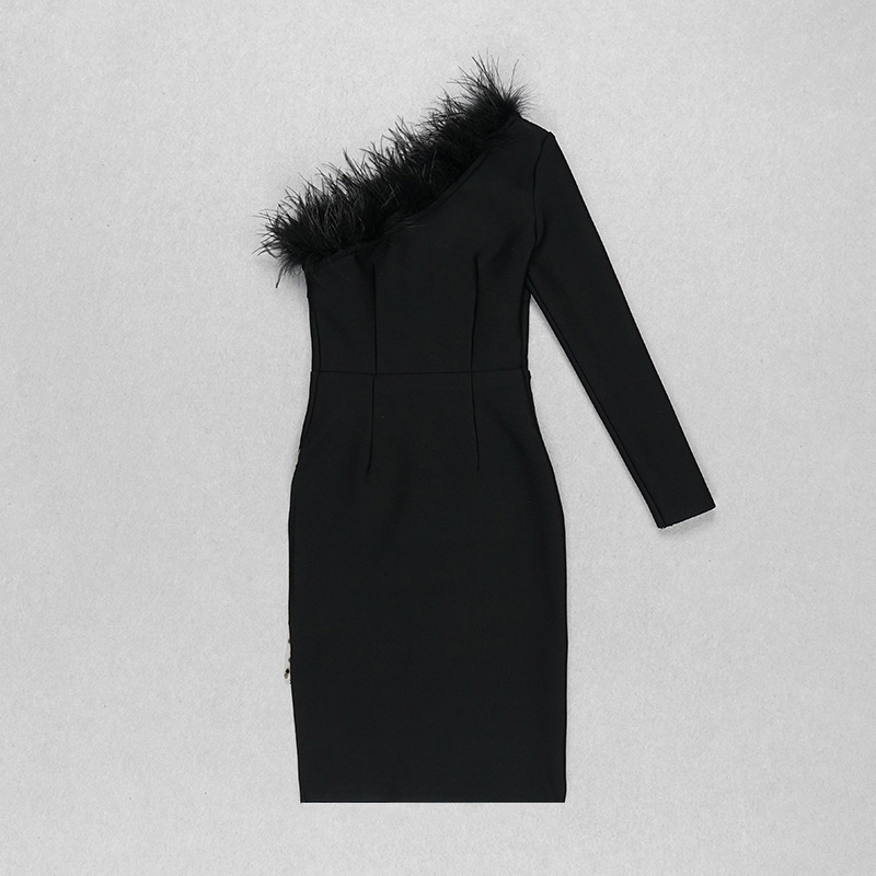 Fur Collar Bandage One-shoulder Long-sleeved Polka Dot Mesh Dress