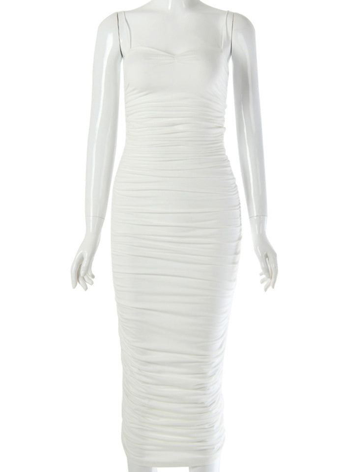 JillPeri Sexy Sleeveless Low Neck Midi Dress High Stretch Ruched Daily Outfit Kardashian Style Bodycon Party Club Long Dress