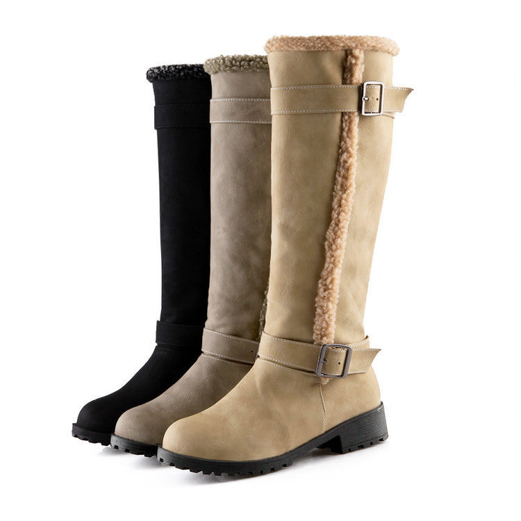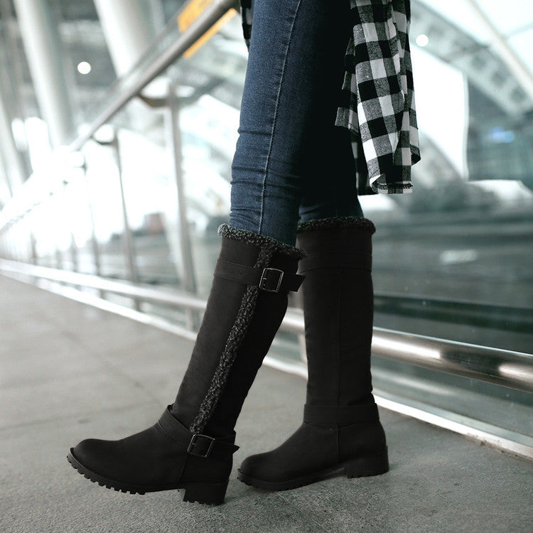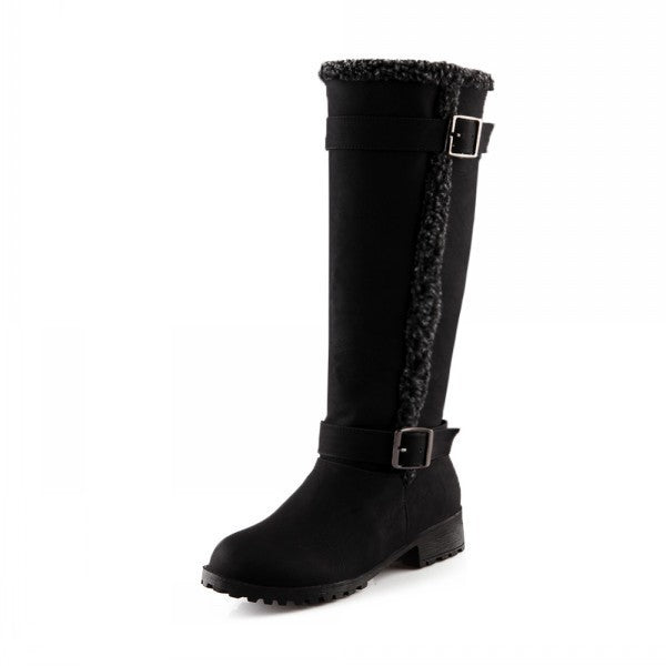 Low Heel Belt Buckle Women's Boots, High-top Snow Boots