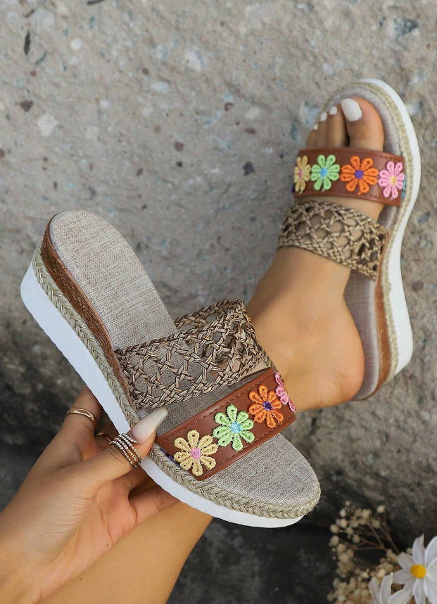 New Plus Size Rope Bottom Platform Peep Toe Sandals