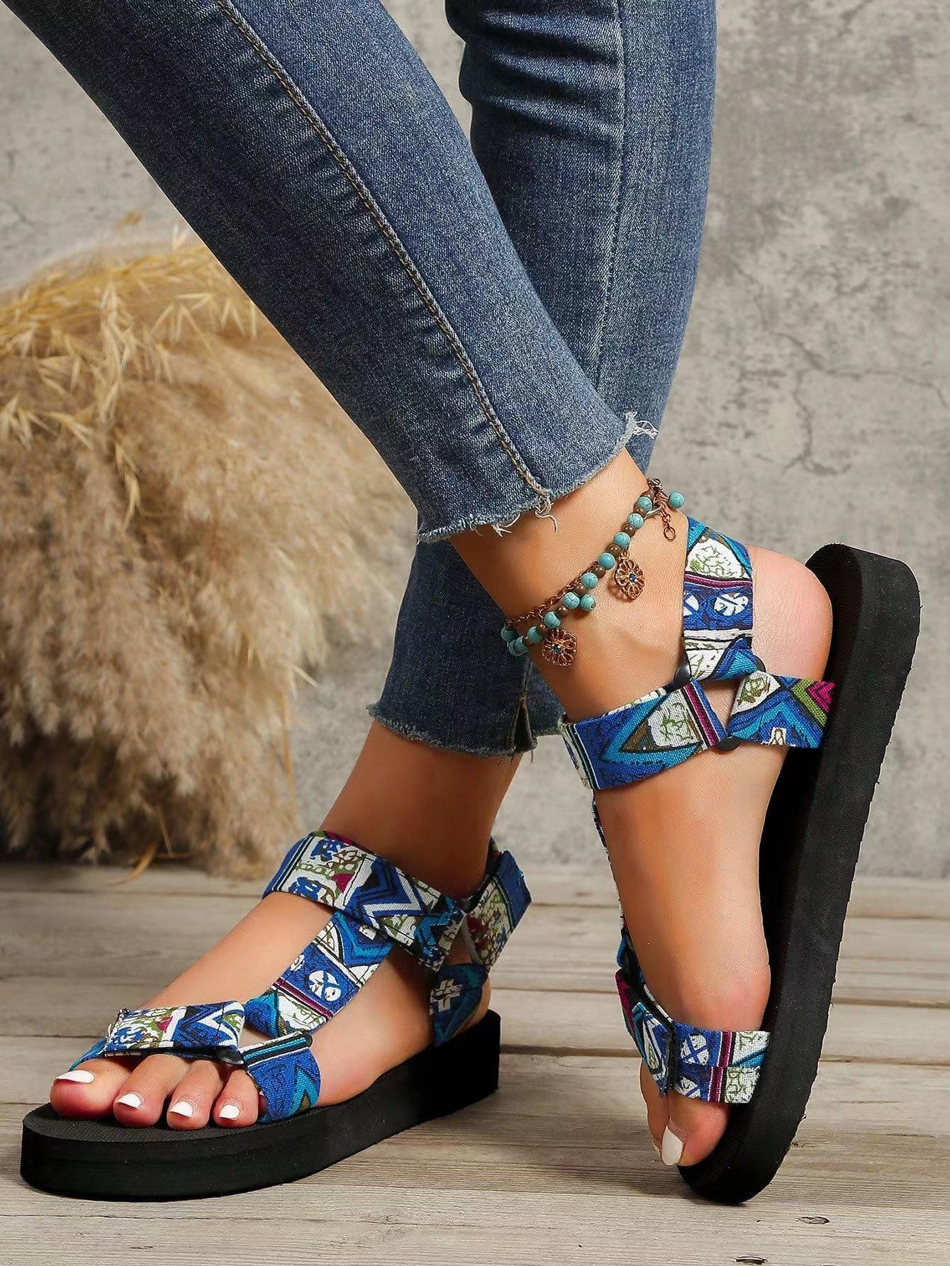 New Thin Bottom National Style Velcro Beach Sandals