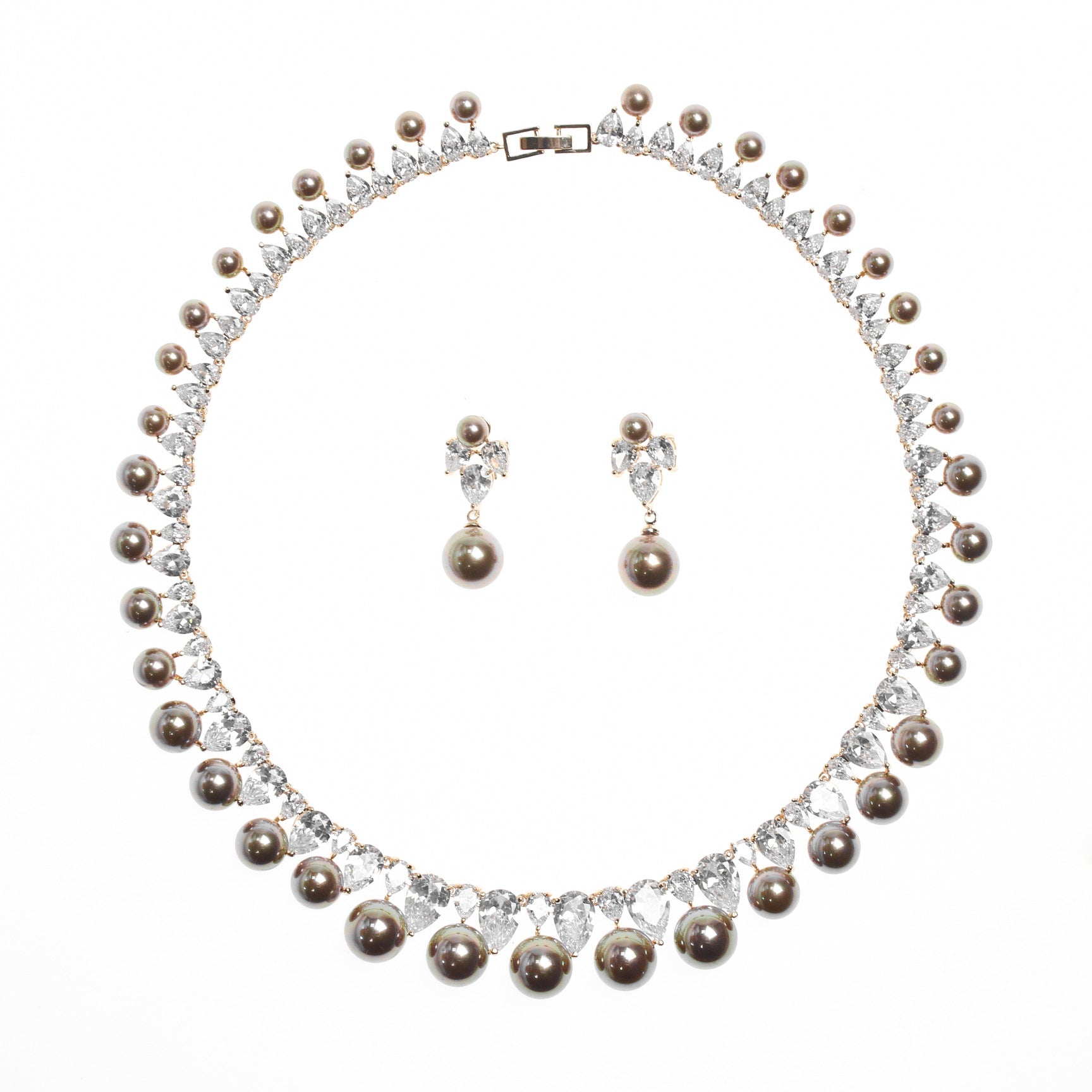 Pearl Zircon Earrings Necklace Set Dinner Jewelry
