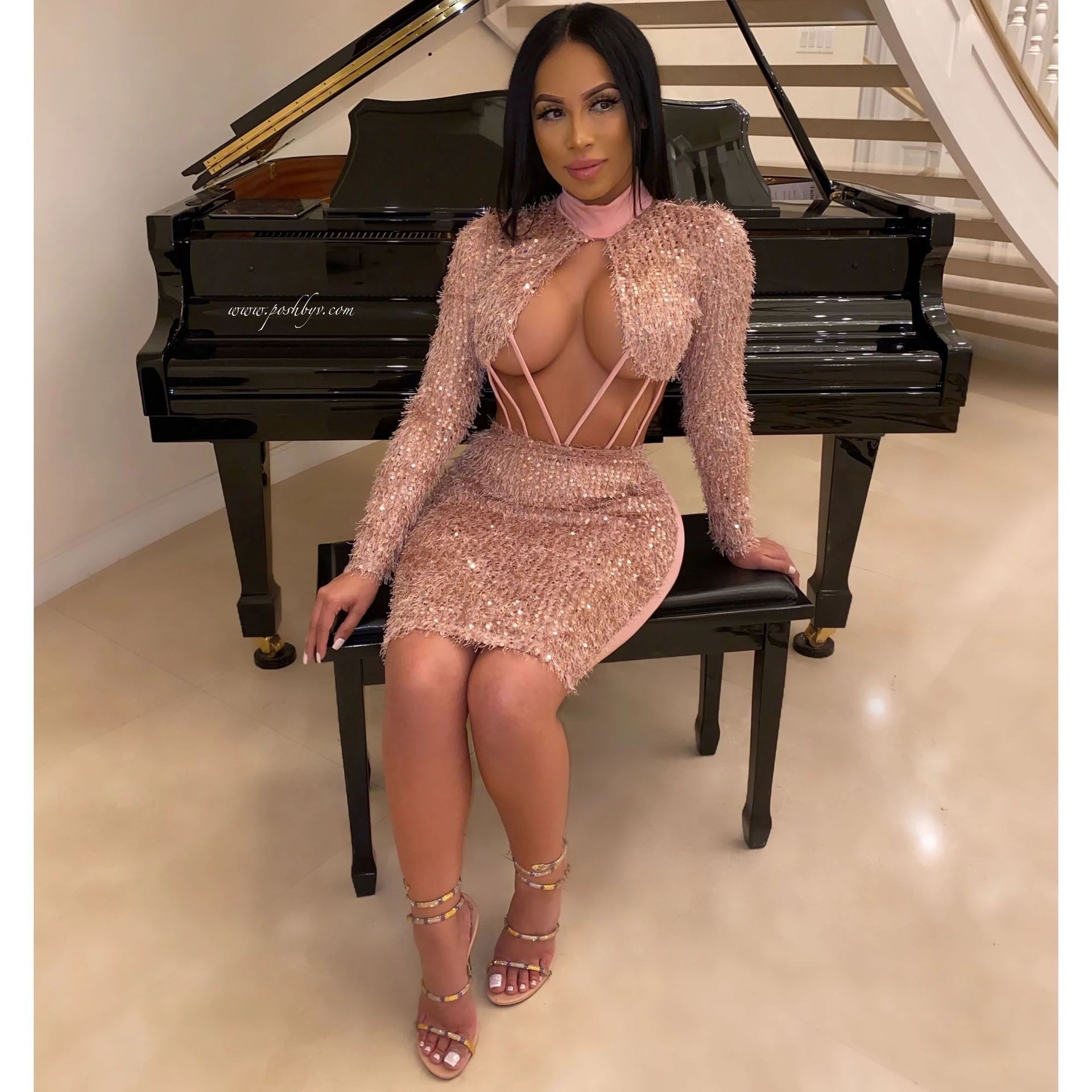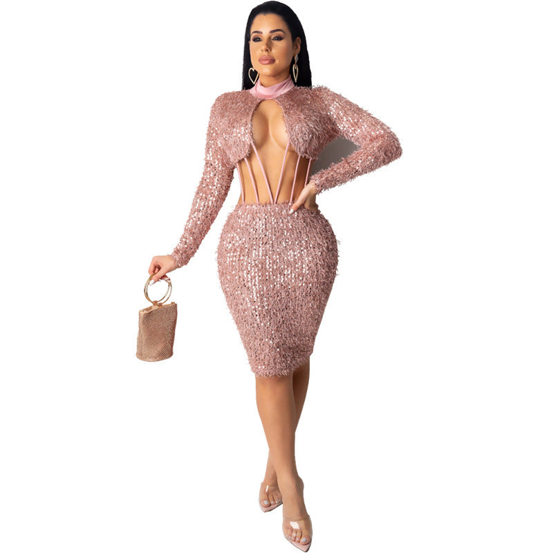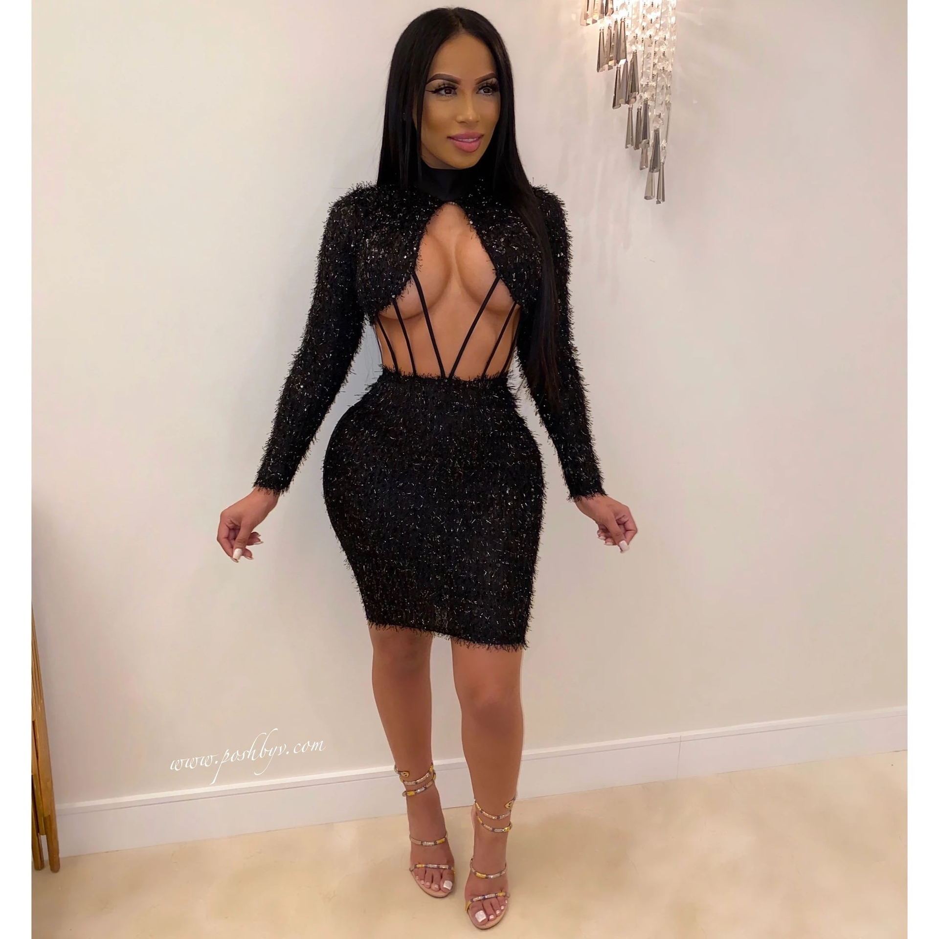 Plush Beaded Embroidered Fashion Stretchy Lining Mini Dress