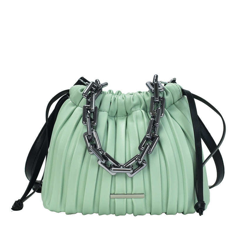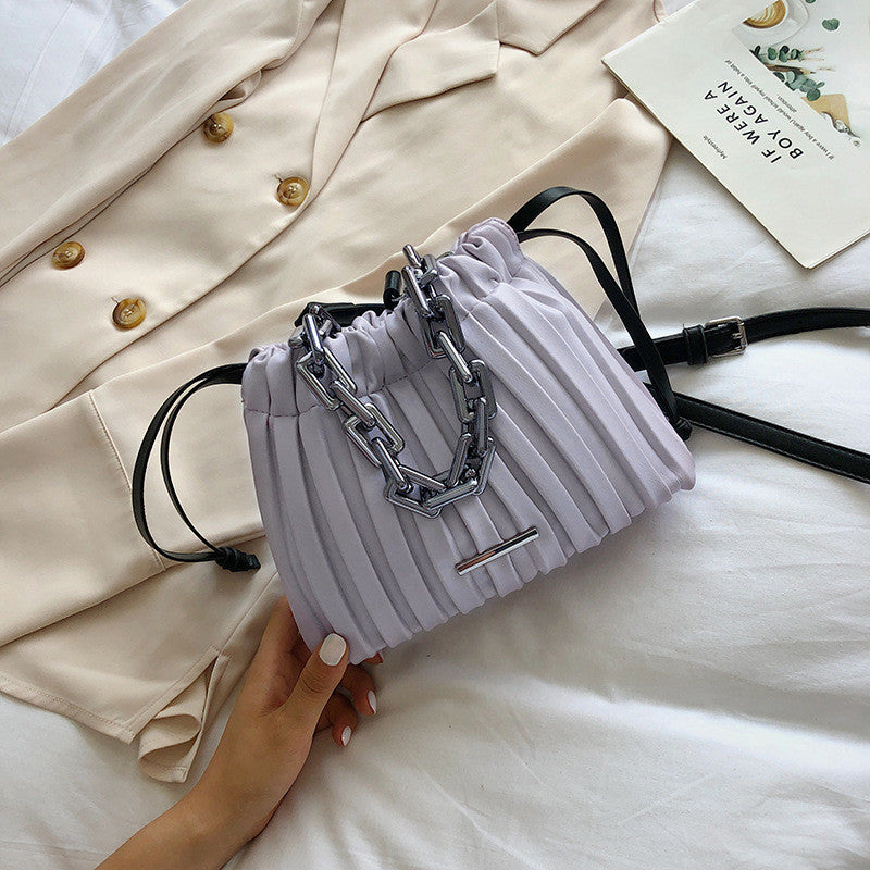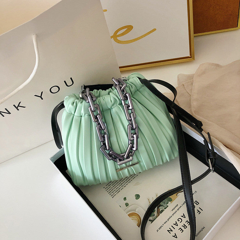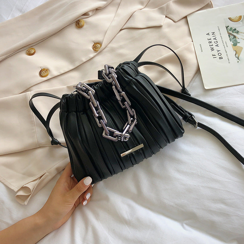 Portable Chain Bag, Pleated Drawstring Bucket Bag, Fashionable
