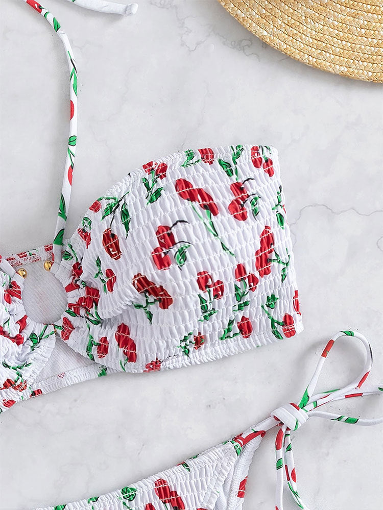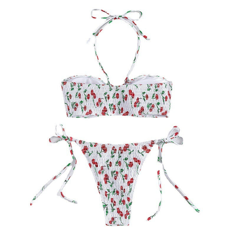 Printed Halter Backless Split Women's Sexy Three-point Beach Bikini Swimsuit