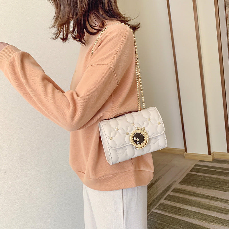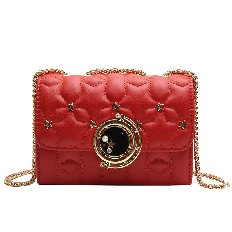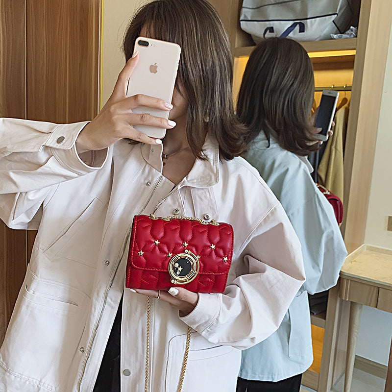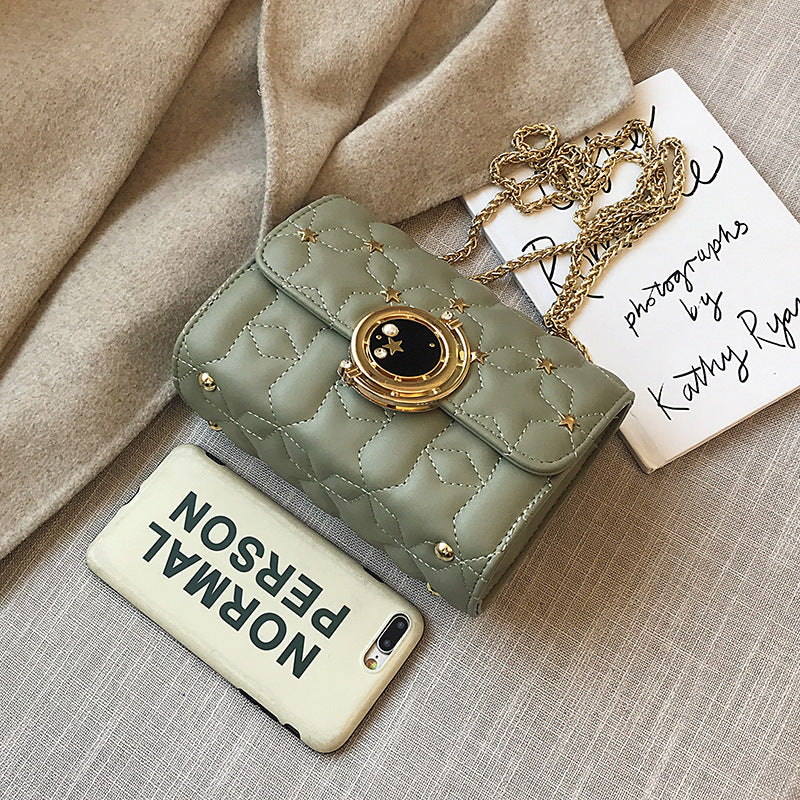 Retro Chain Female Messenger Bag Simple Texture Rivet Diamond Small Square Bag