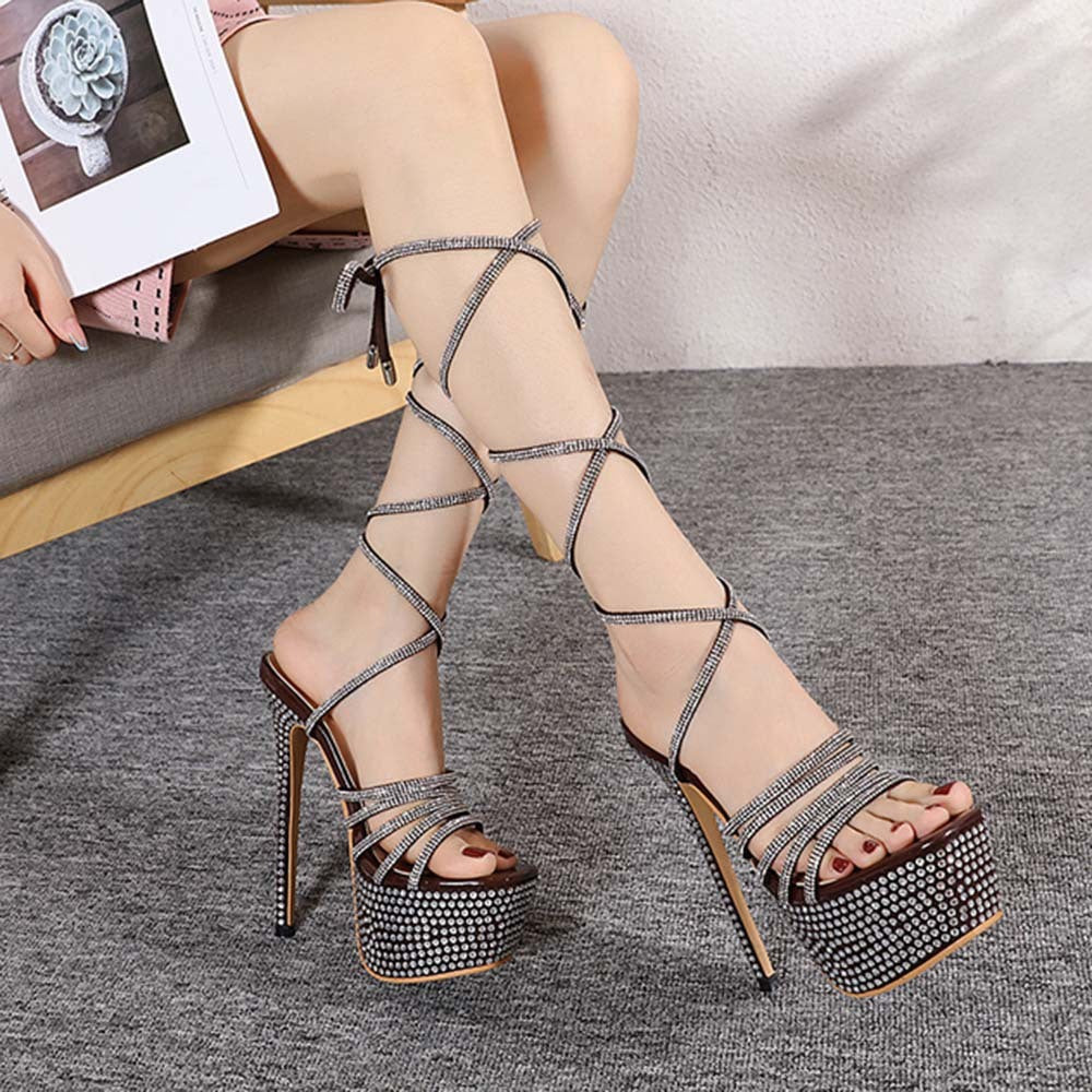 Rhinestone Cross Strap Platform Super Heel Sandals