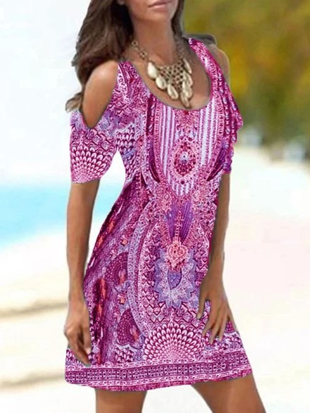 Round Neck Cutout Short Sleeve Fashion Print Dress