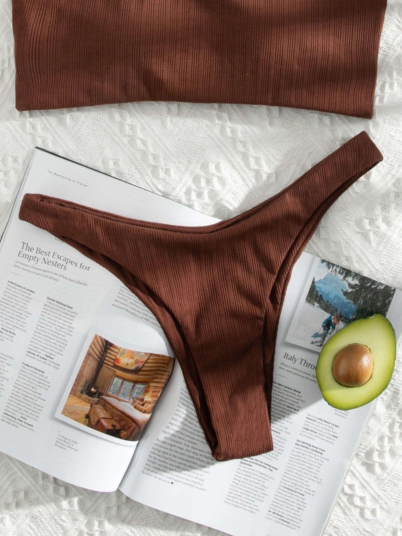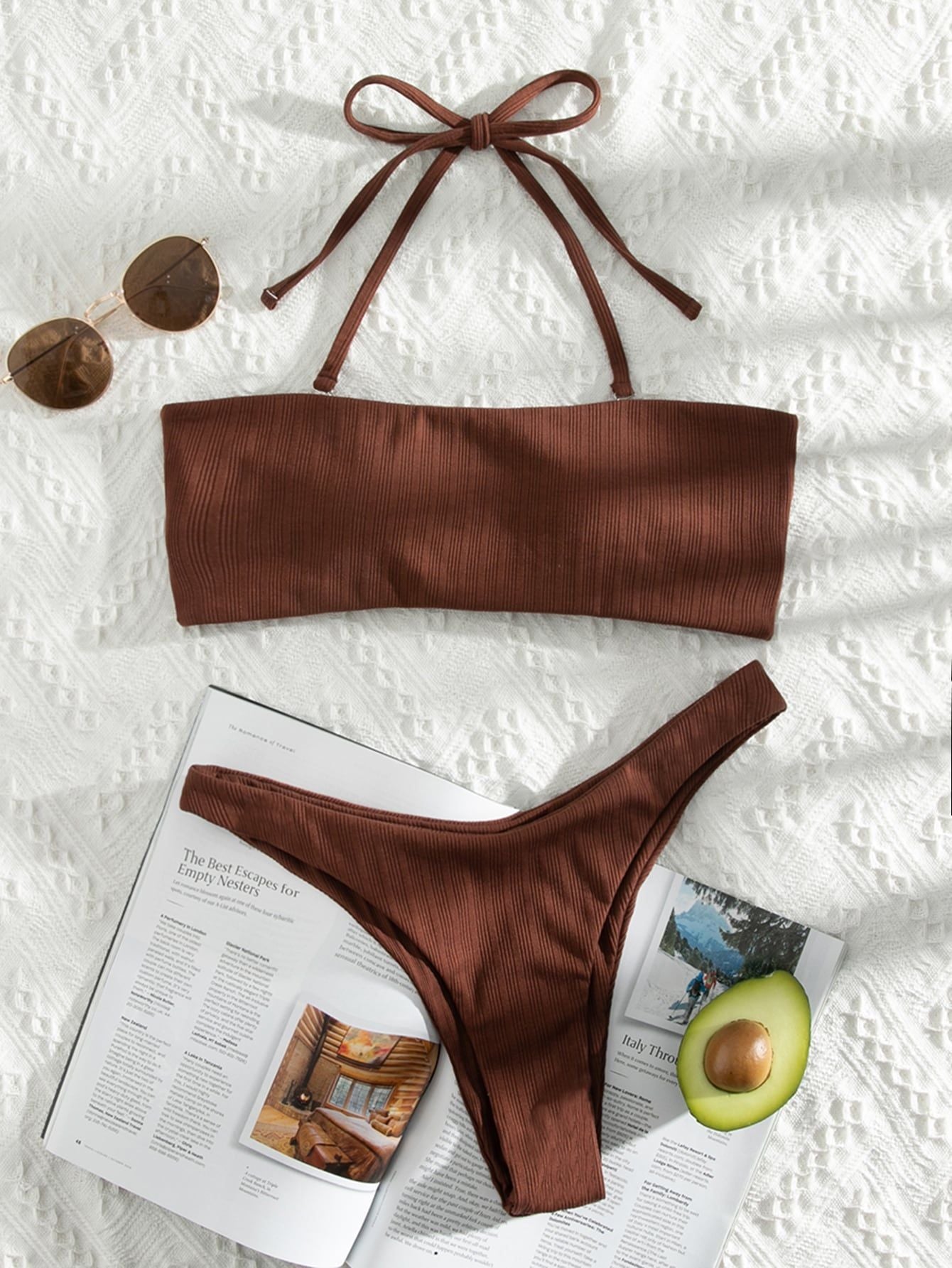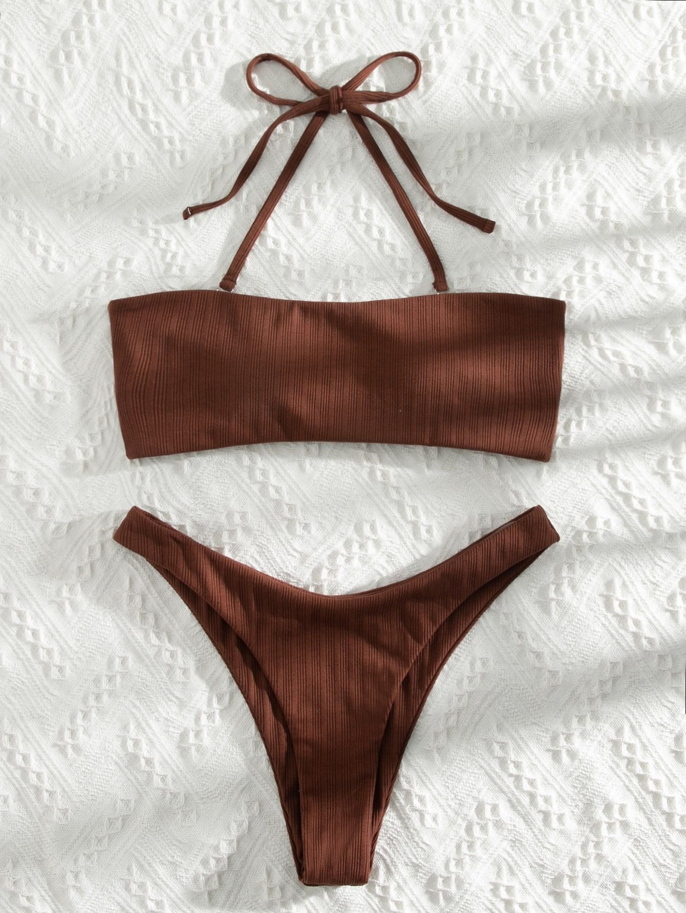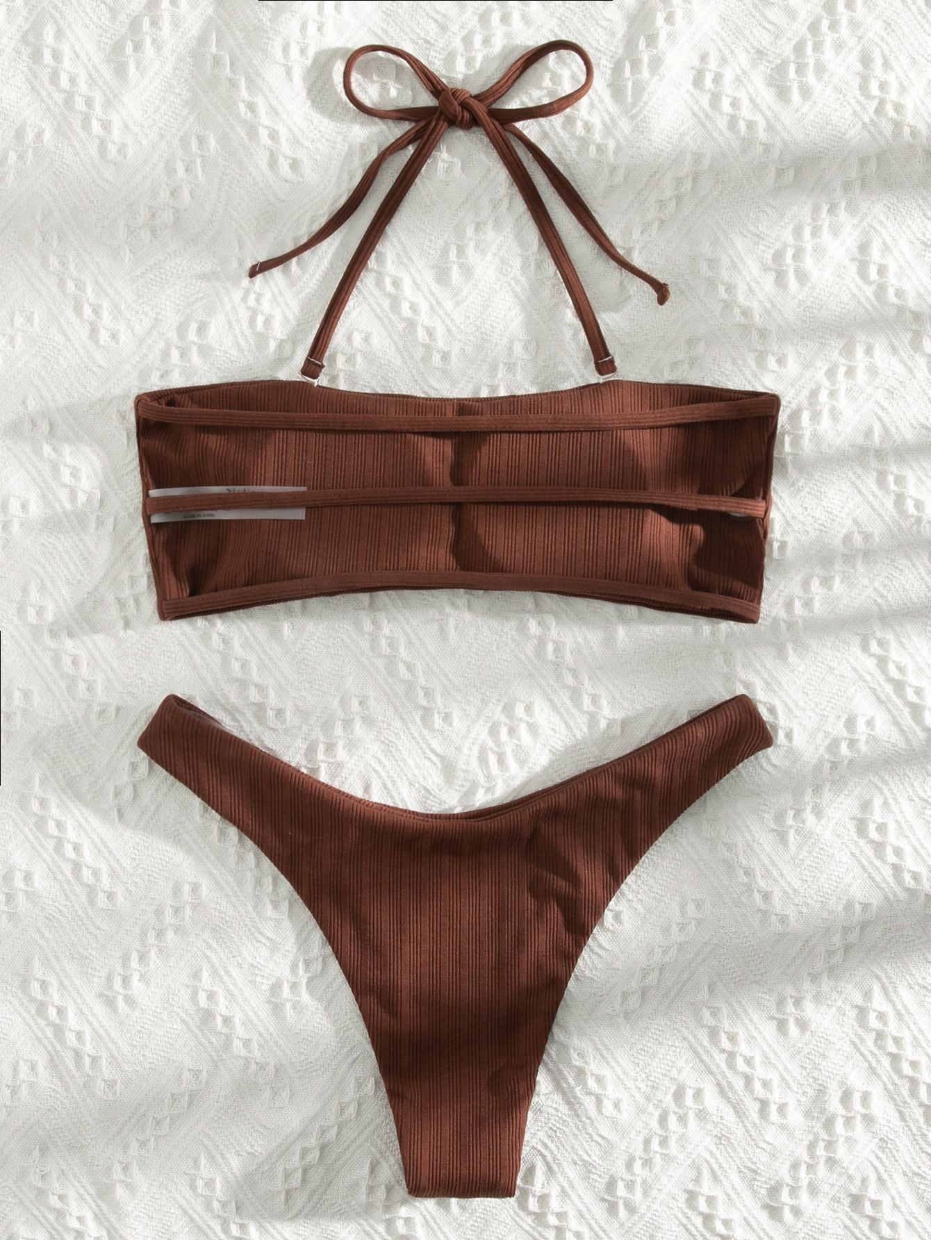 Sexy Lady In Swimsuit Solid Color Bikini Lace-up