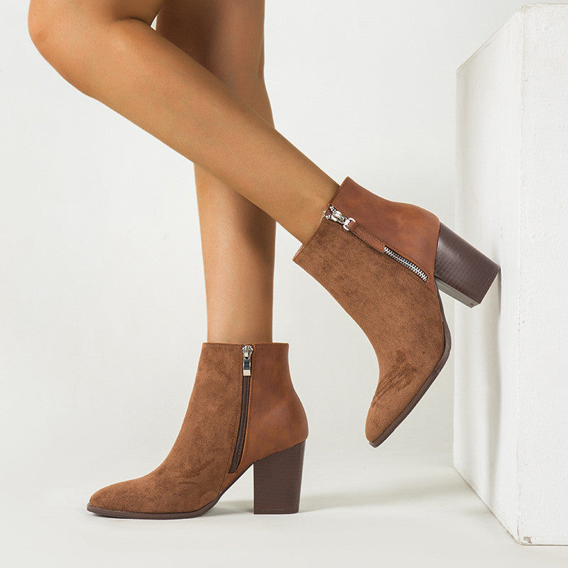 Short Boots Suede Thick Heel High Heel Ladies Boots