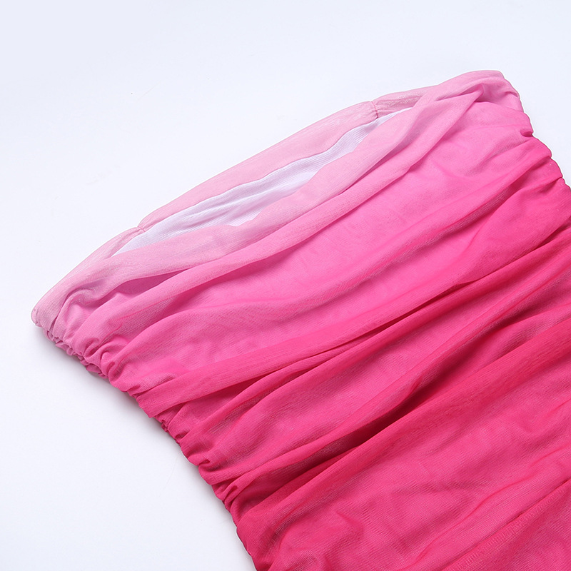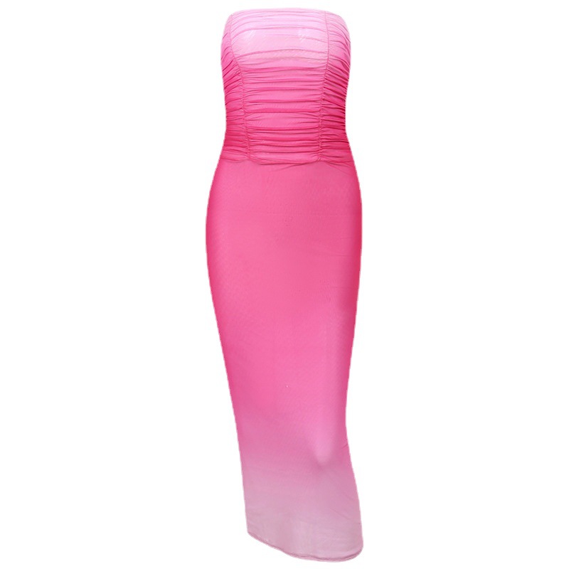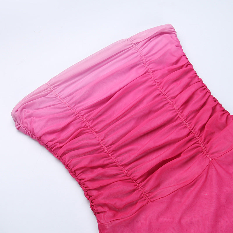 Slim-fit Gradient Pleated Backless Tube Top Dress
