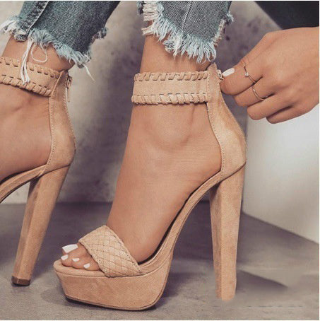 Stiletto high heel braided sandals