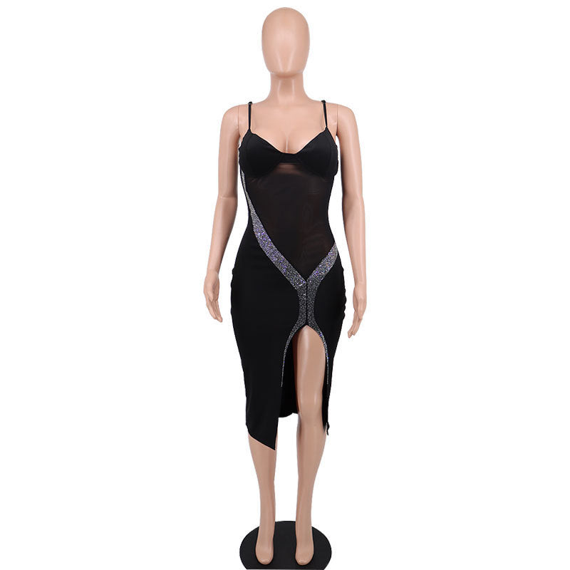 Suspender Skirt Temperament Mid-length Hot Diamond Skirt