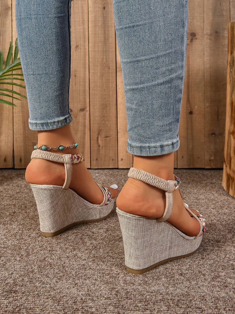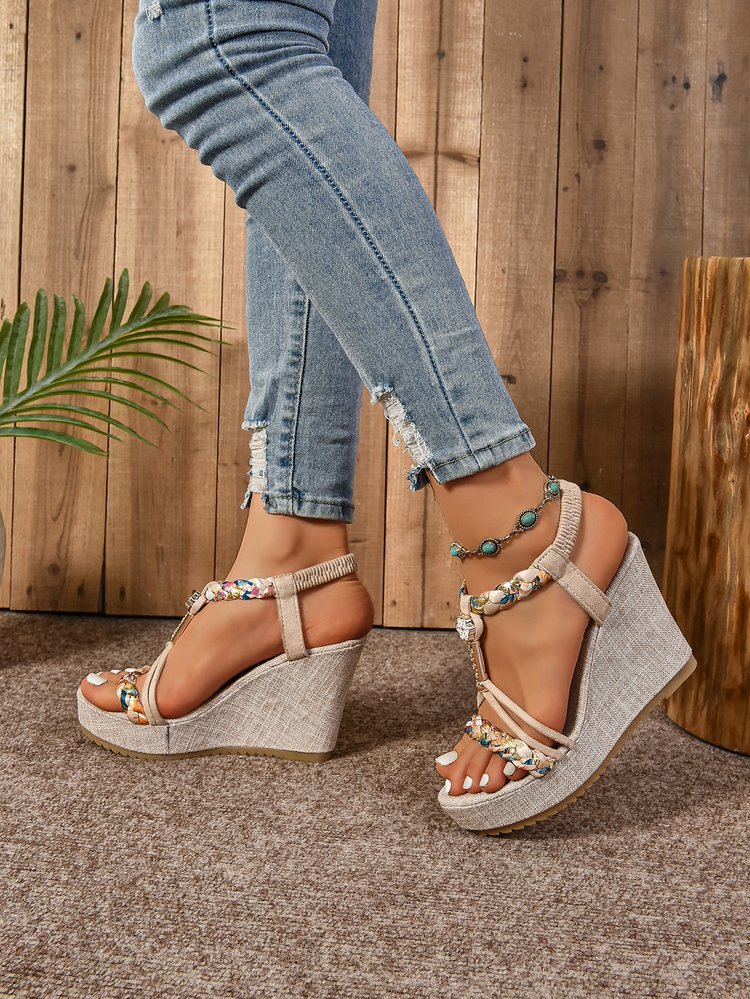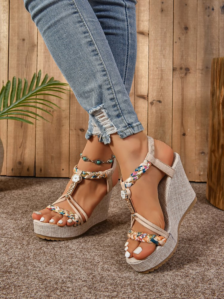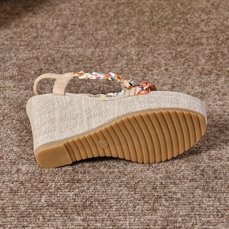 Wedge Sandals Hemp Rope Rhinestone Straw