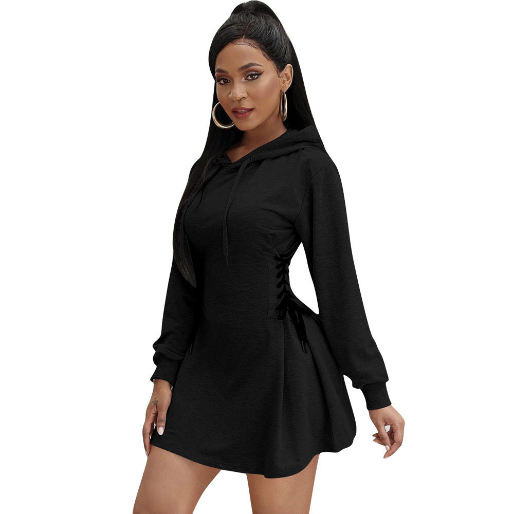 Women's Fashion Casual Hooded Tie Up Dress