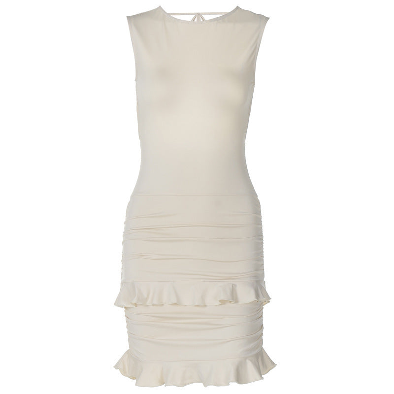 Women's Fashion Solid Color Backless Lace Dress