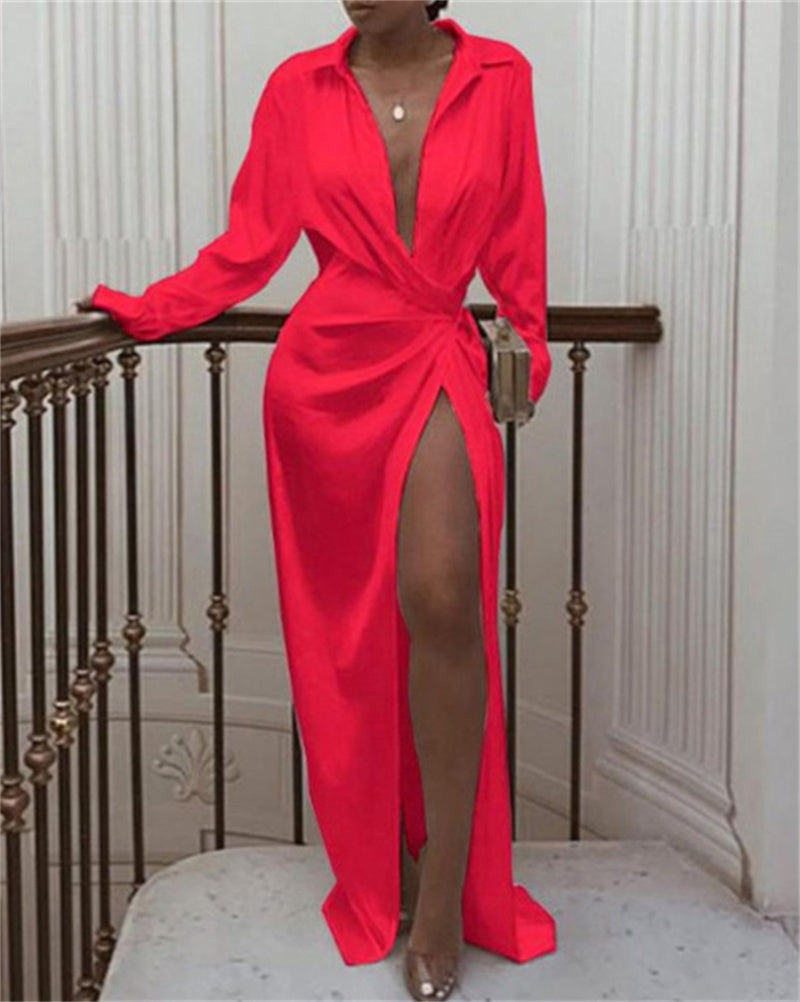 Women's Lace-up Slit Long-sleeved Dress