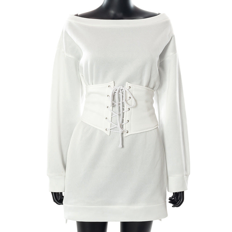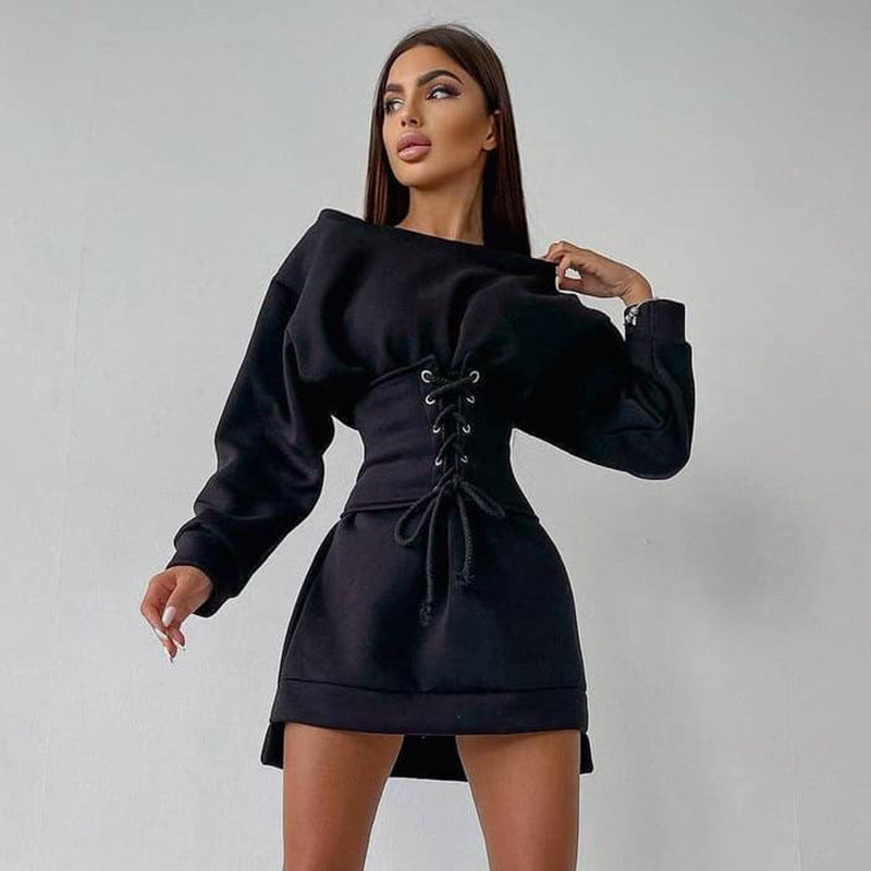 Women's Long Sleeve Tunic Drawstring Dress