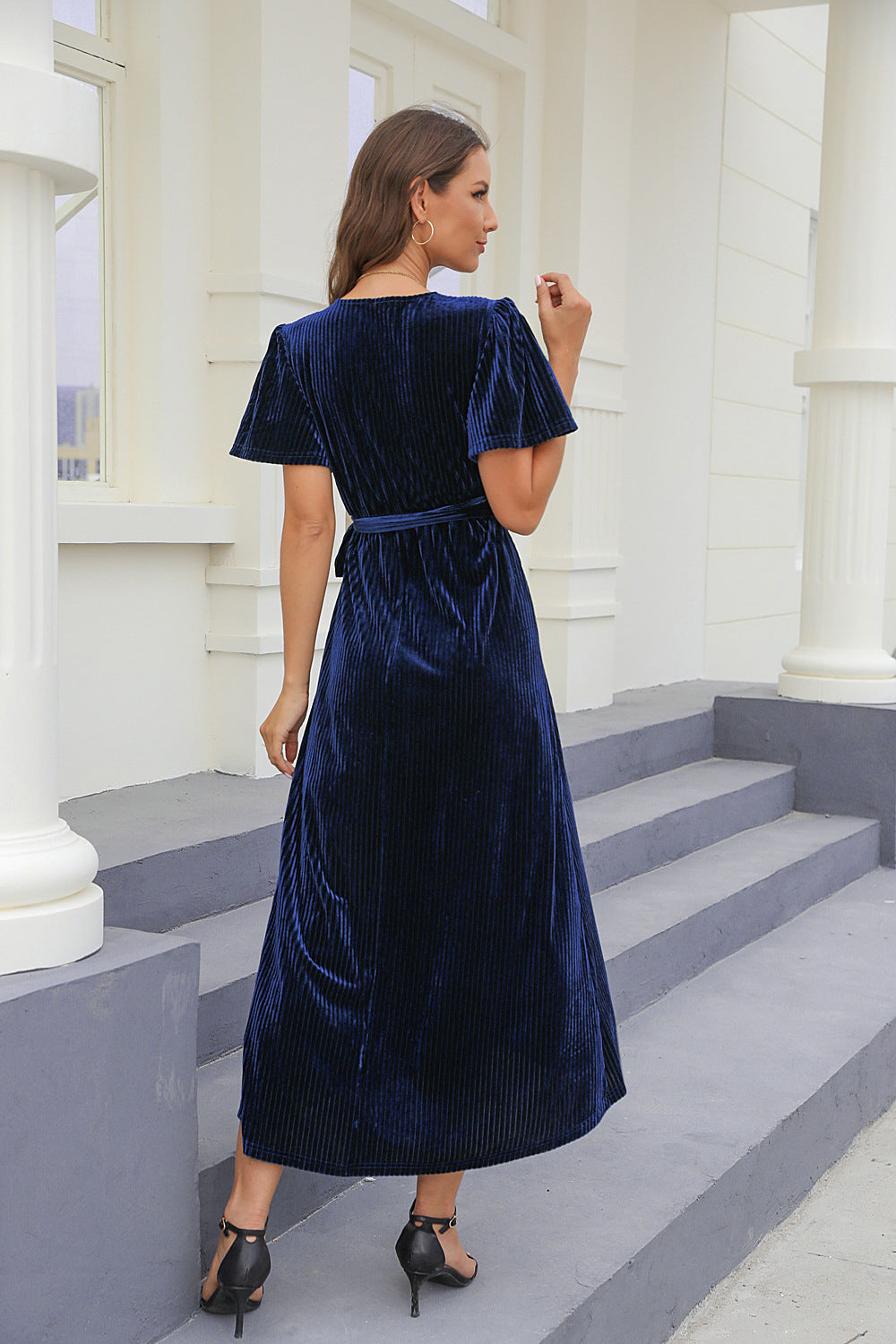 Women's Spring And Autumn Split Gold Velvet Mid-length Formal Dress