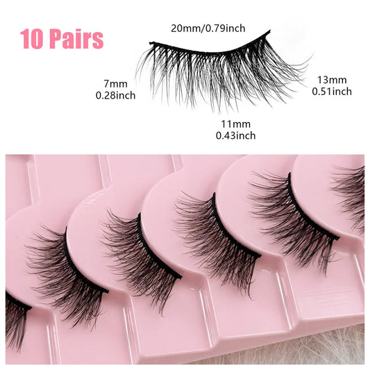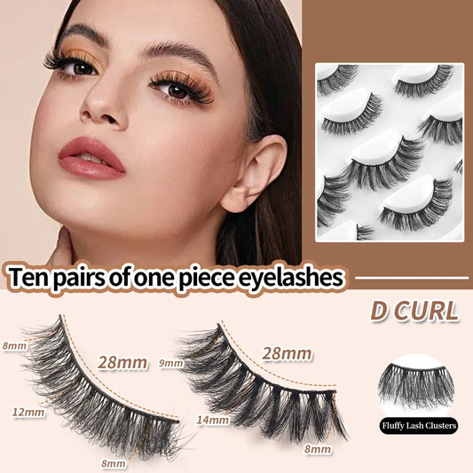 10 Pairs of Style False Eyelashes, Messy Style, Fluffy and Dense Curly Eyelashes, High-Quality Faux Mink Eyelashes