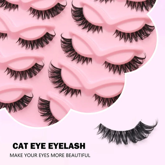 10 Pairs Set Style Cat Eye False Eyelashes Thick Curling Enhance Eyes Multiple Styles Available