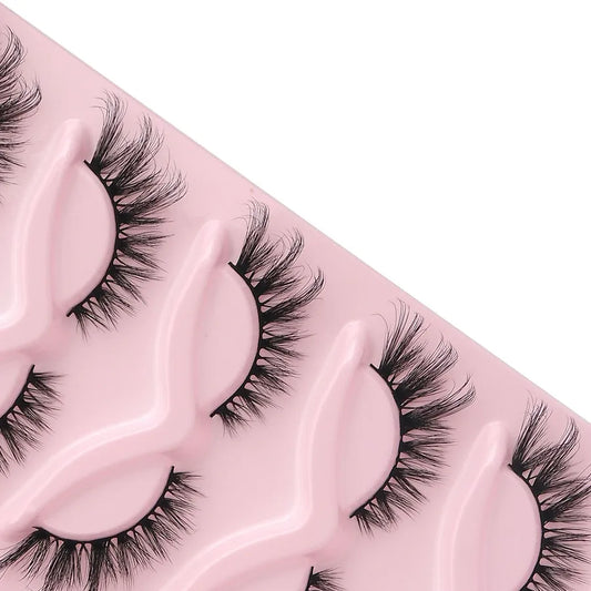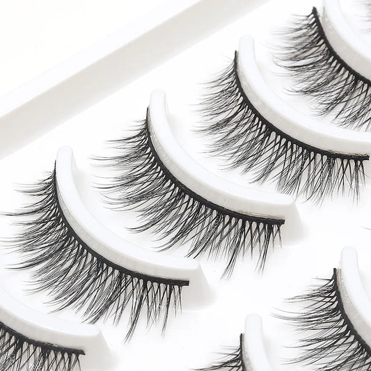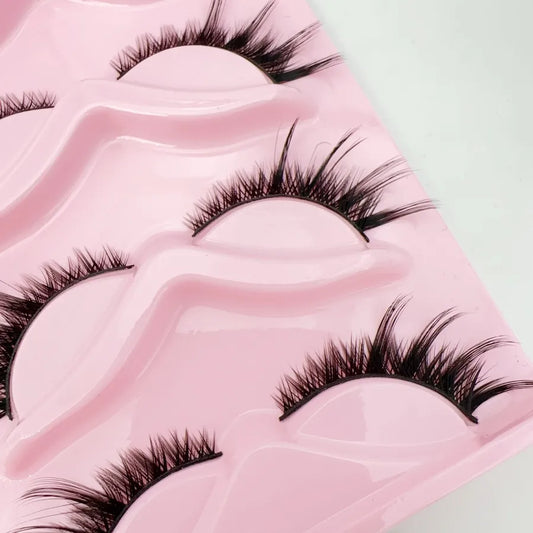 5 Pairs 3D Eyelashes Fox Style Cat Eye Eyelashes Artificial Fiber Slanted Natural Dense Curled False Eyelashes
